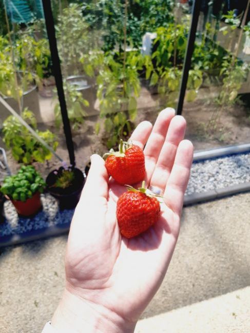 Hier vielen ze van de plant dus toen een kommetje eraf gehaald voor jam. Superlekker!