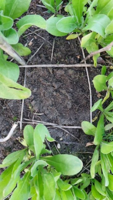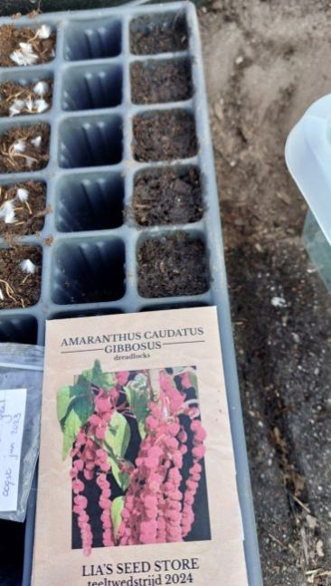 11. Ik heb vandaag ook alle zaden gezaaid onder het mom van: alles of niks. 5 vakjes in een tray gevuld met stuk of 4/5 zaden, de overigen op een klein stukje volle grond tussen de goudsbloemen. Mooi vierkantje van takjes eromheen zodat ik het terug kan vinden.