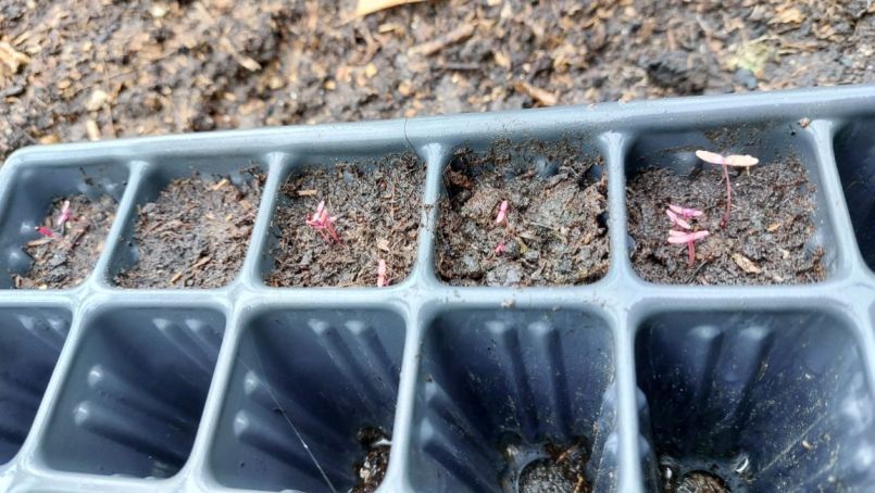 1. Ik was mijn zaaisels een beetje vergeten nadat de slakken er huisgehouden hadden, maar er waren zowaar 2 laatkomers die de slakken gemist hebben. Die heb ik opgepot en staan er nu zo bij. Ik doe dan blijkbaar toch nog mee in de wedstrijd!