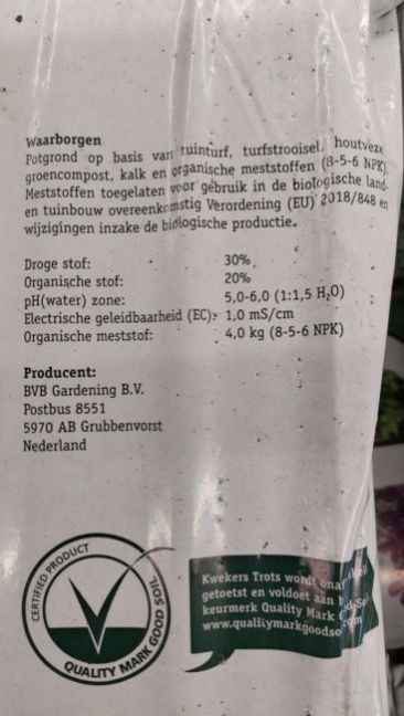 Helaas geen foto daarvan, ik heb de zakken laten liggen en een bestelling gedaan bij de lokale scouting die een potgrondactie houden. Goede grond voor een eerlijke prijs en dan ook nog een lokale club sponsoren leek mij een betere besteding van mijn geld.