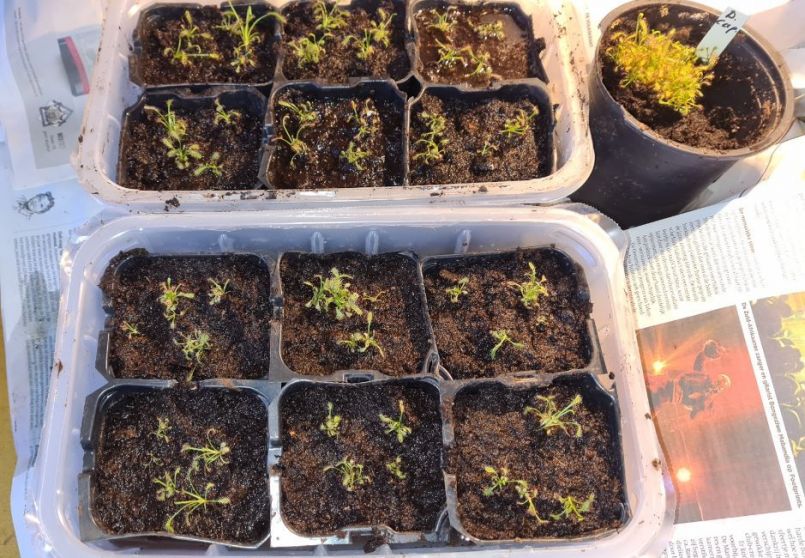 @Ciska: OK, genoteerd. Zonet de Kaapse zonnedauw verspeend, ze hebben nu weer de ruimte: Want in de zaaipot (rechtsboven het restant) werd het wel erg benauwd.