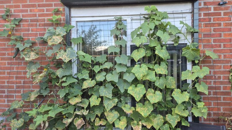Mijn Marketmore gaat nog prima. Te goed, morgen maar weer eens een rondje buren doen. De planten worden wel minder, maar geen meeldauw. Wel wordt het oude blad slecht (aan bladknippen doe ik niet). Er is nog nieuwe aanmaak van komkommers. Oogst wellicht net zo als alle vorige jaren: ergens tot begin oktober.