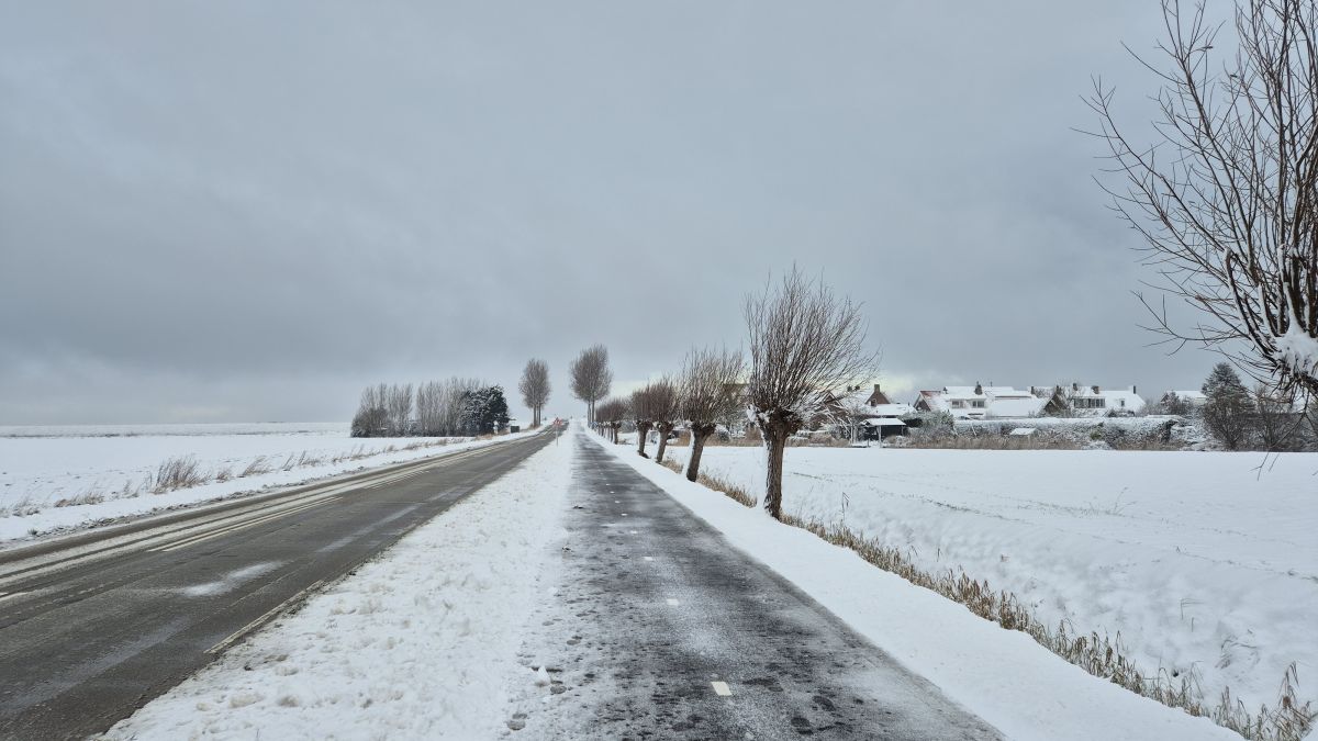 ^ Vanochtend keek ik even naar buiten, eindelijk wat sneeuw! ^ Stukje gewandeld, en achterom gekeken ^ Daarna weer terug naar de kachel