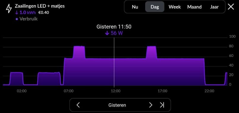 Mijn LED battens, van 60 cm lang (bruto), wat verbruiken die nou, i.c.m. warmtematjes? Nu heb ik een slimme stekker (van Home Wizard) aangesloten op de complete set (schakelklok + thermostaat + (nu) 3x LED batten + 2x warmtematje à 10 Watt). Thermostaat is nu ingesteld op 25 - 26 graden. Het verbruik in 24 uur: - Vanaf 0:00 uur: De thermostaat schakelt de twee warmtematjes van elk 10 Watt aan, af en toe. - Om iets voor 07:00 uur gaan de LED battens aan (3x), door de schakelklok. - De battens geven ook iets warmte, daarnaast wordt het minder fris in de woonkamer. Daardoor schakelen de warmtematjes slechts heel af en toe even aan. - Om 21:30 uur worden de battens weer uitgeschakeld, door de schakelklok. Totaal stroomverbruik van deze opstelling: 1,0 kWh per 24 uur. Metingen op basis van een dagtemperatuur van ca. 20 graden, nachttemperatuur dalend naar 17 graden. Die € 0,40 per kWh is nog mijn oude tarief, is nu € 0,30.