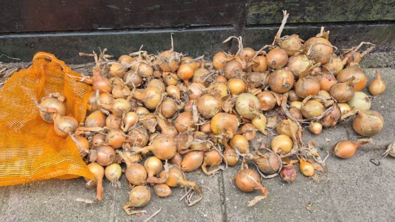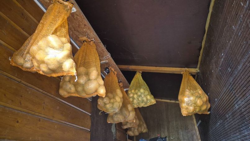 Nu 20 deelnemers. Zie de lijst in het 2e bericht van dit topic ( https://www.moestuinforum.nl/topic/51639-mini-wedstrijd-hoeveel-kilo-aardappels-heb-ik-geraapt/#comment-532805 ) Morgen (maandag 14 oktober) is de laatste dag om mee te doen aan deze mini-wedstrijd. De aardappels zijn inmiddels gewogen, en daarna muisbestendig opgeborgen in netzakken. Nog niet alles hangt daar nu, ik kwam een paar stevige schroefhaken tekort. Voor een juiste inschatting van het totale gewicht is de foto in het eerste bericht je enige informatiebron. Rechts, aan de dwarsbalk, hangen twee netzakken geraapte uien (een derde zak ligt nog binnen).