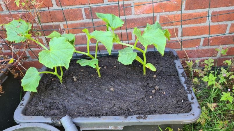 Hier een slecht komkommerjaar. Alle zaailingen (gezaaid 26 april) opgegeten door slakken. De herzaai 27 mei schoot ook niet op. Geen last van slakken meer, wel een heel trage groei. Gisteren de Marketmore uitgeplant in een speciekuip: Vorig jaar ging het een stuk beter met de Marketmore. Hieronder een foto van 12 juni 2023: Ik lig dus een maand achter t.o.v. eerdere jaren.