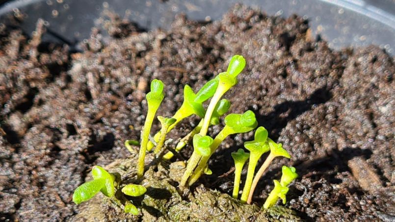 Gisteren: Zeekraal, Tijm, Oregano De tomaten (voor buitenteelt) heb ik maar een weekje doorgeschoven. Er is nog even geen plek vrij op de warmtematjes en onder de LED battens. Huidige stand van zaken: