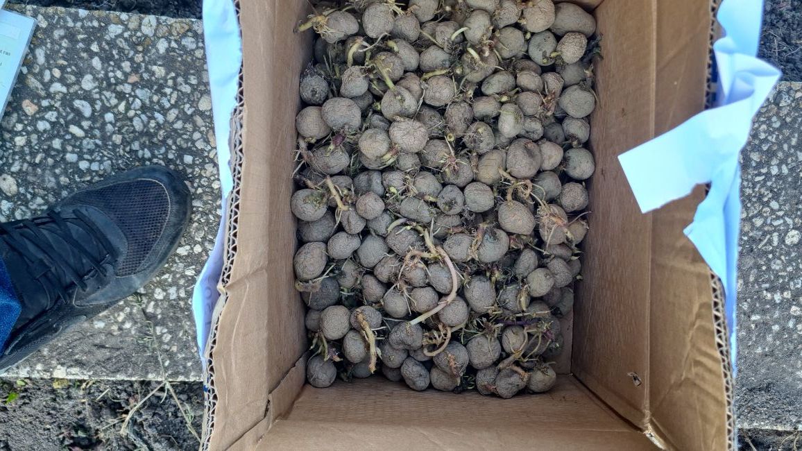 De verzender had geen pootaardpel meer. Dus moest ik op marktplaats weer gaan zoeken.