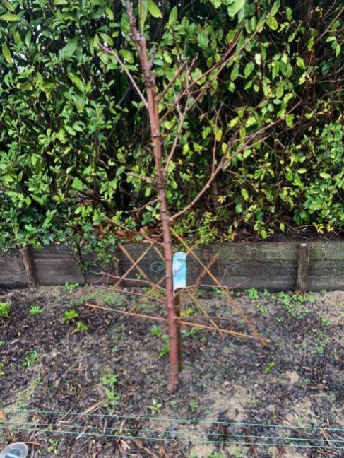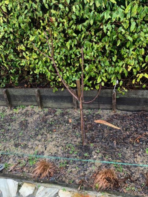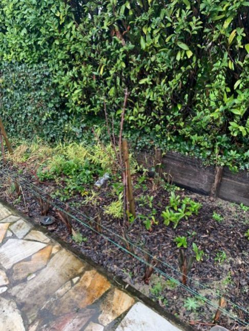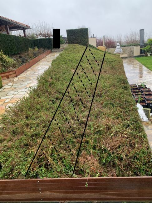 Hallo, Ik heb in mijn achtertuin een kleine helling met struiken en dacht eraan om een pad vrij te maken en mijn fruitbomen daar te plaatsen (tussen de struiken). De reden waarom ik de struiken niet helemaal wil verwijderen is omdat het anders heel kaal uitgaat zien, + dan hoef ik niet steeds onkruid weg te halen. Op de foto's heb ik het deel van de struiken gemarkeerd waar ik een pad zou willen aanmaken en de fruitboompjes zijn op de andere foto's te zien. Graag zou ik jullie advies willen horen en willen weten of het mogelijk is. Alvast erg bedankt! PS: Ik weet dat de leibomen niet goed zijn geleid en de entplaats zit onder de grond ipv boven.