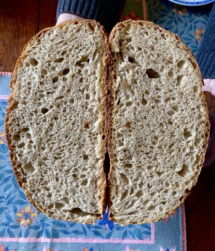 Ja ik snap wel wat je bedoeld met de smaak maar ik ben er nu aan gewend en misschien is het speltdesembrood wat minder sterk. Dit laatste broodje: het heeft minstens 10 minuten te lang in de oven gezeten, belletje van het kookwekkertje had ik genegeerd. Dat levert een extra knapperige korst op en dat smaakt lekker! Gaan we blijven doen dus.