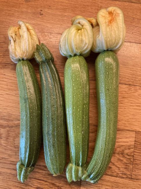 Van een buurvrouw die dacht pompoenen te hebben maar uiteindelijk 4 courgetteplanten heeft. Lekker hoor die kleintjes, even stoven in de pan met wat kruiden.