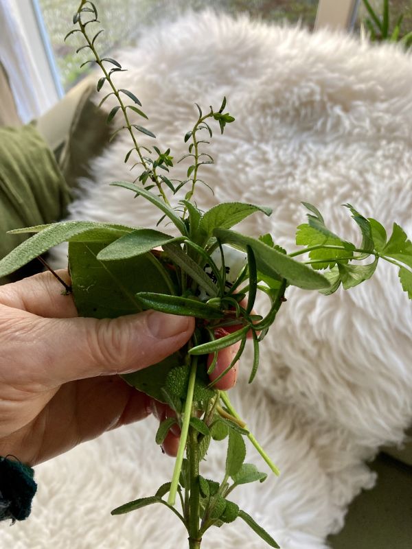 Pompoensoep met de laatste potimarron van @Martijn en verder verse kruiden uit de ontdooide kruidentuin👍en een lekker kaasui stokbroodje erbij.