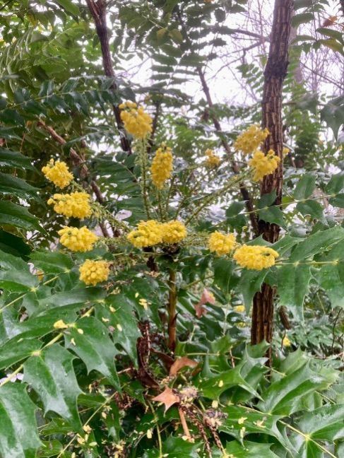 Ook een mahonie dus? Want ik heb ook iets in de voortuin maar die struikjes zijn een stuk lager en hebben bredere meer vlekkerige bladeren maar ook met stekeltjes aan t blad en misschien ook bloei maar dat is me niet echt opgevallen tot nu toe. Dat heet ook mahonie. Heeft deze mahonie iets te maken met het hout mahonie?