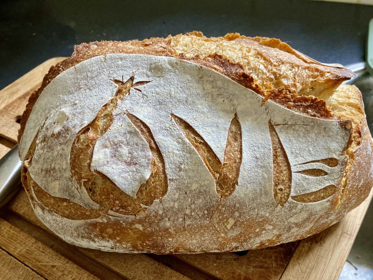 Echt een heel mooi broodje gebakken, het hoogste broodje tot nu toe. Speltbloem zuurdesem met anijs. Super gerezen, een jubel waard. Bedoeld voor de verjaardag van Lie, hij is gelijk met de Paashaas jarig..