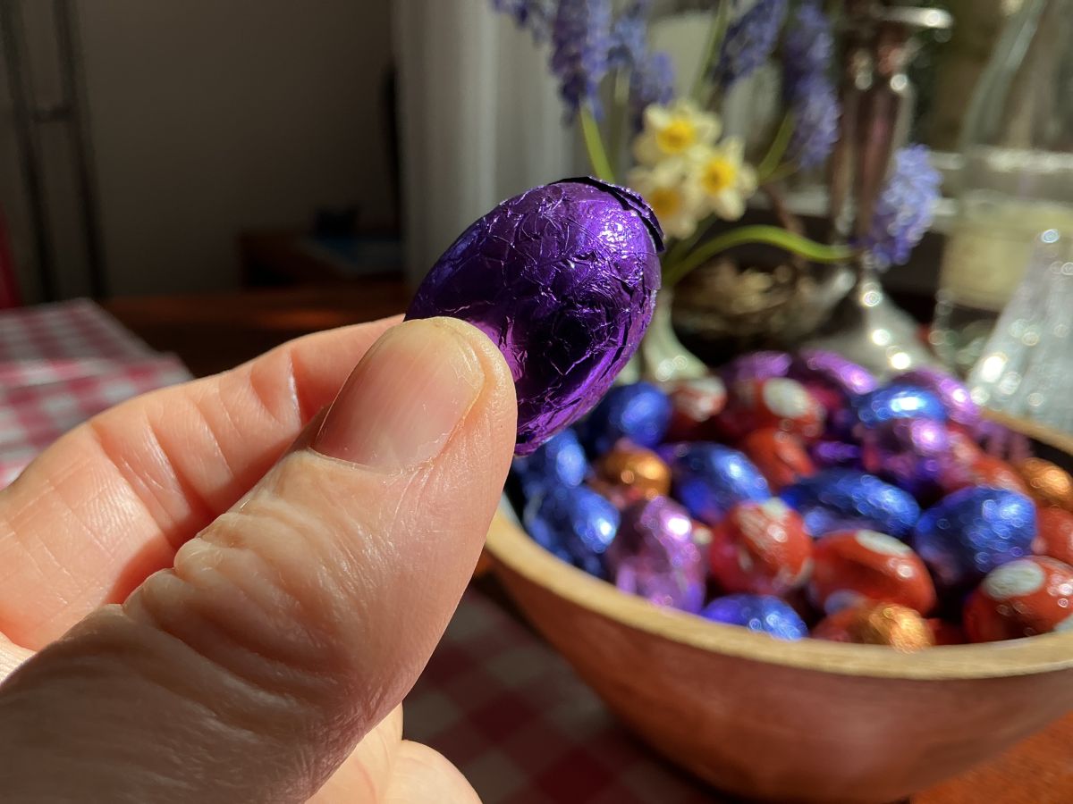 Das mooi voor de achterblijvers. Maar ik bedoelde eigenlijk dat het leuk is om binnen de Paasdagen de eitjes te vinden. Zonder hints was het echt wel behoorlijk moeilijk vond ik, ik kwam ver maar had het zonder nooit gered. Alleen Dahli was er wel supergoed in..die verdiend toch wel een extra mooie badge met bv een gouden eitje erin/ erop? Paaseieren hebben wel de neiging verstopt te blijven, daar zijn het paaseieren voor: het is hun aard. Ik vond er vandaag ook nog weer een paar in ons bosje die de zoekers gisteren over het hoofd hadden gezien