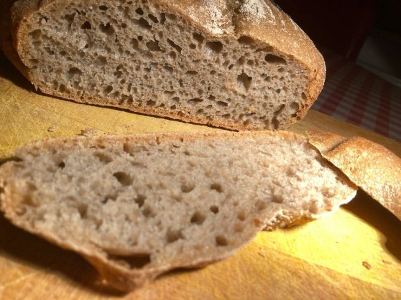 Daar zit ik meestal wel onder maar ik merk weinig verschil gelukkig maar dan. Het broodje is toch best ok. Een echte zuurdesem met een redelijk mooie korst en een smeuïge elastische binnenkant met gaten. Als je fouten maakt met bv teveel water of met verkeerde rijstijden helpt het best als je in ieder geval weet hoe je brood terug op spanning te brengen of je deeg naar een beter vochtgehalte. Dat is ervaring, daar kon ik vandaag mooi gebruik van maken. Vaak bakken! Edit: als toevoeging, dit is natuurlijk een hybride broodje. Alhoewel ik me afvraag hoe dat zit met de gist en zijn werking na een rijstijd van 6 uur in totaal. Nog zoveel te leren!- Zelf brood bakken moeilijk ?
