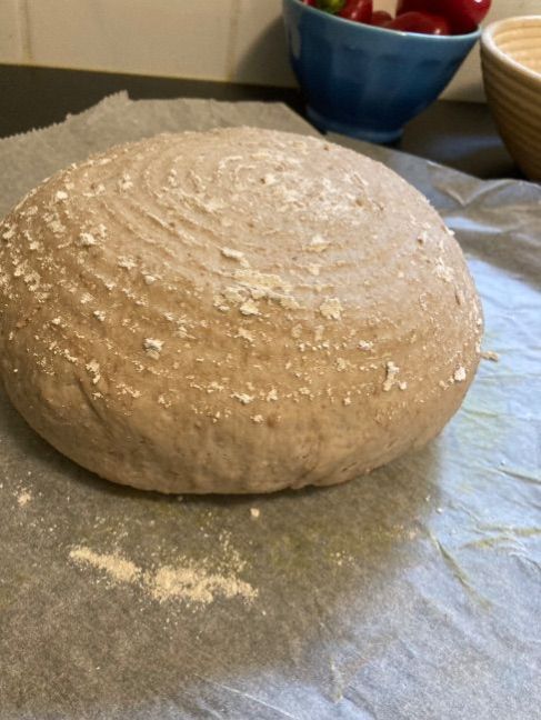@Mellie Niet op 500 maar op 330 gram meel. Ik heb het even uit laten rekenen: Om te bepalen hoeveel water je nodig hebt, moet je eerst het vochtgehalte van het deeg berekenen op basis van de totale hoeveelheid meel en de desem met 100% hydratatie. Je hebt: - 90 gram desem (100% hydratatie), wat betekent dat de desem bestaat uit 45 gram meel en 45 gram water. - 330 gram meel. Stap 1: Bereken het totale meel 330 gram meel + 45 gram meel uit de desem = 375 gram meel in totaal. Stap 2: Kies de gewenste hydratatie De hydratatie van een brood is vaak rond de 65-75%. Stel je kiest voor 70% hydratatie, dan heb je 70% van 375 gram meel aan water nodig. - 70% van 375 gram = 262,5 gram water Stap 3: Trek het water in de desem af Je hebt al 45 gram water in je desem, dus: - 262,5 gram - 45 gram = 217,5 gram extra water Dus, als je een deeg met 70% hydratatie wilt, moet je 217,5 gram water toevoegen aan je 330 gram meel en 90 gram desem. Afhankelijk van je gewenste hydratatie kan dit wateraantal veranderen.