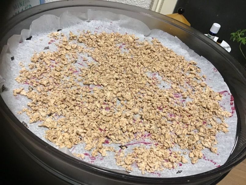 Applaus dat ziet er mooi uit! Als het weer in je kast staat kan je mooi een foto zetten in het net genoemde topic. Ik heb van de gedroogde bieten bietenpoeder en van de gekookte en gedroogde kastanjes meel ( eigenlijk ook bijna poeder ) gemaakt. Mijn keuken is nu overal lichtjes bedekt met rozig stof😉😅