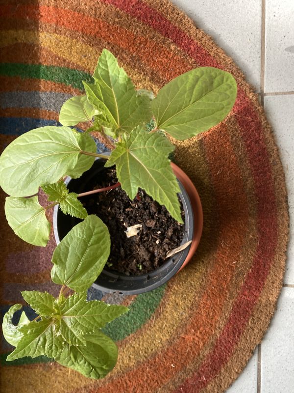 De nepeta doet het goed, ik heb nu 7 potjes te vergeven. Iemand belangstelling voor een zaailing wonderboom ( ricinus)?