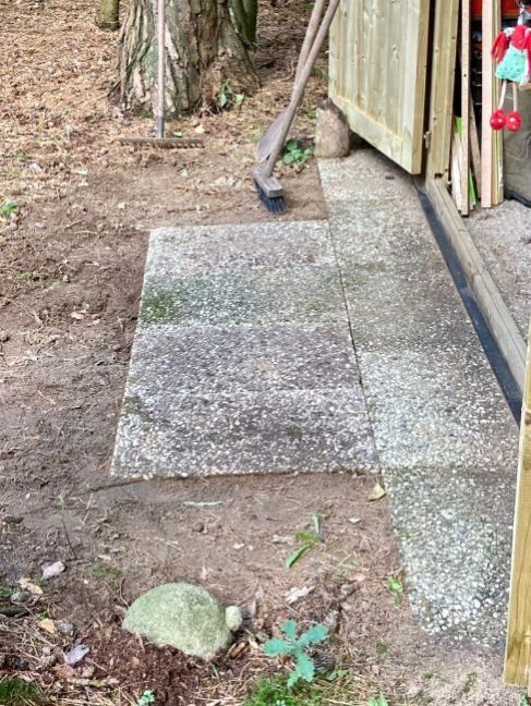 3. Gefeliciteerd! Wij kregen vandaag drie mooie dikke grind tegels en ook meteen hulp om ze neer te leggen als tweede rij voor de deur van ons schuurtje. Het schuurtje werd ook even afgestoft🧹 👍