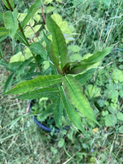 hij heeft de plant 4 jaar terug gehad van een tante die veel aparte planten heeft, aesclepias, aparte pimpernellen, asters etc. Veel prairieplanten. Hij heeft de plant 1 x verpot na het krijgen en tot nu toe geen bloei. De plant staat samen met een boel anderen in een plantenasiel en opkweekhoek. De tante geeft ook geen uitsluitsel.