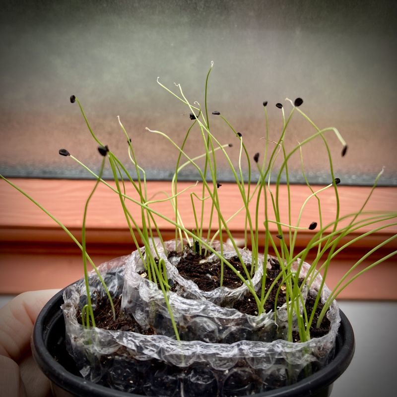 De bijna bloesem van de Doyenne de Comice . Het is een boompje van de Aldi, vorig jaar geen bloesem of peer nu een aardige hoeveelheid bloesems, dat geldt ook voor zijn gelijktijdig in 2024 aangekochte broertje de Conference. De appletini, de bloemen moeten nog even doorgroeien maar zijn in dit stadium ook al prachtig Spinazie in de bak. Ik had er wat extra aarde bij gegooid vandaag, de hartjes zijn wat onder geraakt maar dat regent er wel weer uit denk ik. De peulen in de zadenslak. Viel me niet tegen hoe ze waren gegroeid en ik kon de plantjes heel gemakkelijk scheiden Wat fijn dat ik Saint Antoine plantjes heb. Dankzij @Anna3 die ze ooit bij mij meenam daardoor heb ik ze hier ook. De eerste perkel komt boven👍 Ook nog wat bloemen gezaaid in een grote pot. Twee soorten cosmea, goudsbloem, kaasjeskruid en ook paarse morgenster oftewel de haverwortel (tragopogon porrifolius) die is tweejarig. Een beauty van een plant en bloem. En eetbaar. Dit jaar zou ik de wortel kunnen eten, misschien laat ik daarvoor een enkele in de pot die behoorlijk diep is groeien. Ik had ze jaren in Frankrijk en ik heb ze ook wel eens gegeten zie Haverwortel. . Dit jaar groeien de rozetten en de bloem komt dan volgend jaar