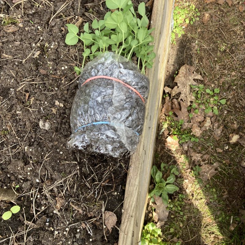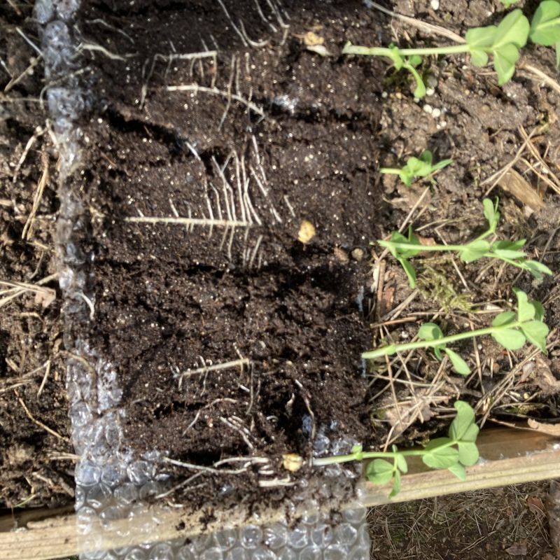 Gezaaid uit de rol de peul ambrosia. Ok hier was het tijd, ik wilde eigenlijk nog wat wachten omdat peulen iets minder goed tegen kouder weer kunnen maar à la de planten in de rol zagen er goed uit en ze zijn afgehard.