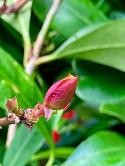 21. Hoi allen, nee geen Kardinaalmuts ( struikjes zijn niet hoog, max een meter) of teunisbloem die ken ik beiden te goed. Jootje er staat idd een rodondendron op de eerste 2 foto’s maar het gaat me om de ielste takken met de rode blad punten.