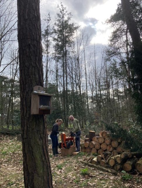 En wij kregen superhulp met de reeds ook met hulp omgezaagde boom, @Jorieke123 en haar Joep kwamen helemaal bij ons kloven met een kloofapparaat en hielpen meteen het gekloofde hout een plek te geven. Superblij zijn wij