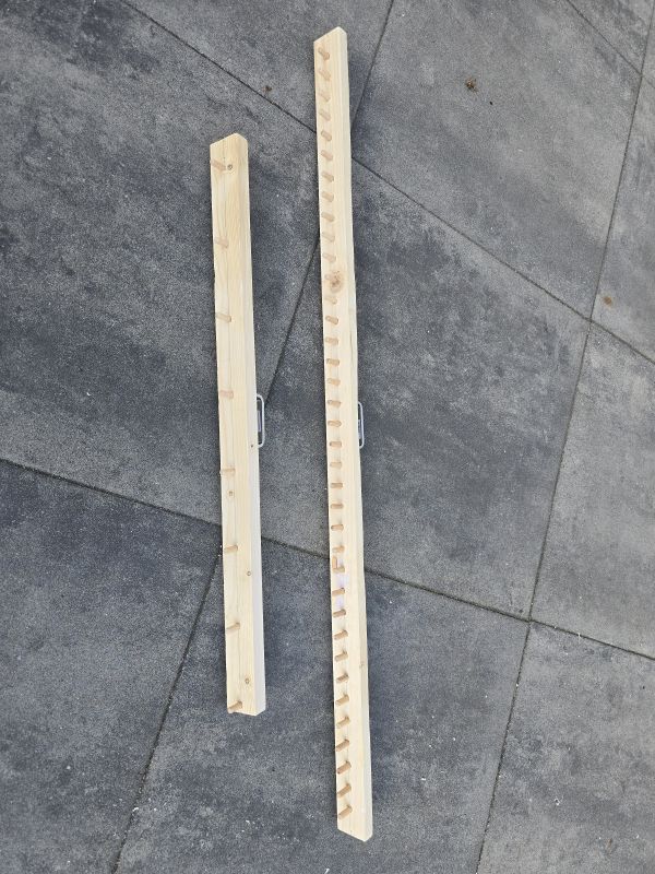 Vanmiddag een zaailat gemaakt en na even zoeken hier zag ik dat ik niet de eerste was met dit idee. Ik heb 2 latten gebruikt, eentje met een afstand van 3cm (wortelen, radijsjes e.d.) en eentje met 10cm voor de iets grotere gewassen. Vanavond direct even uitgetest en het werkt perfect! Gemaakt met een ruwe vuren lat, deuvels 8x35mm, gaten geboord en vastgezet met een drupje houtlijm en een handvat op de lat geschroefd. Dus erg simpel te maken en ga er denk ik nog veel plezier en gemak van hebben.