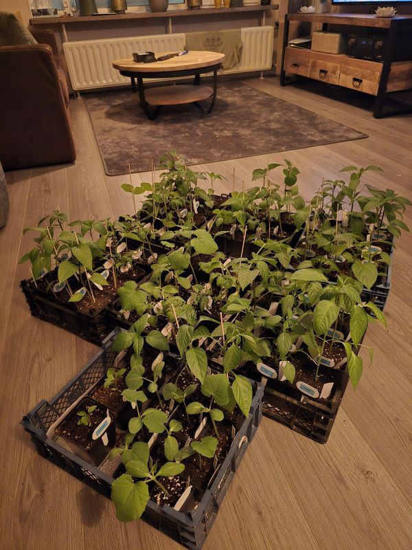 Ja, zeker! Potje jam lijkt me lekker. Ja, dat wou ik nog zeggen inderdaad. Ééntje van elk is genoeg! Voor de paprika ook. Ik heb er nog ééntje op reserve en wou die sowieso meenemen. Maar die is wel een stukje kleiner gebleven als de rest. Op zich groeit hij nu goed en ziet er gezond uit, maar is dus nog wel klein. Als je dat geen probleem vind dan reserveer ik hem voor je. Hoef verder niks extra te ruil hoor.