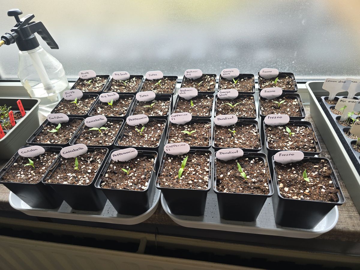 Ik heb hier eerder ook wel wat mee geëxperimenteerd, maar beviel mij niet heel goed, zeker niet in een pot. Ik doe nu max 2 bij elkaar en dan alleen dezelfde soort, dat gaat prima. Dit jaar dan wel in de volle grond. Ik denk dit jaar zoveel soorten dat ik er niet aan ontkom ook ook wat in potten te zetten, ben benieuwd hoe dat gaat. Ik heb het eerste deel van mijn pepers ook al overgezet, ondanks nog geen eerste blaadjes, omdat het al wel een beetje slungeltjes aan het worden waren. Doen het ook prima! Komende weekend de rest ook overzetten. Ik heb nog ruimte voor 4 dienbladen (x12 planten) en eigenlijk is dat toch nog te weinig 😂