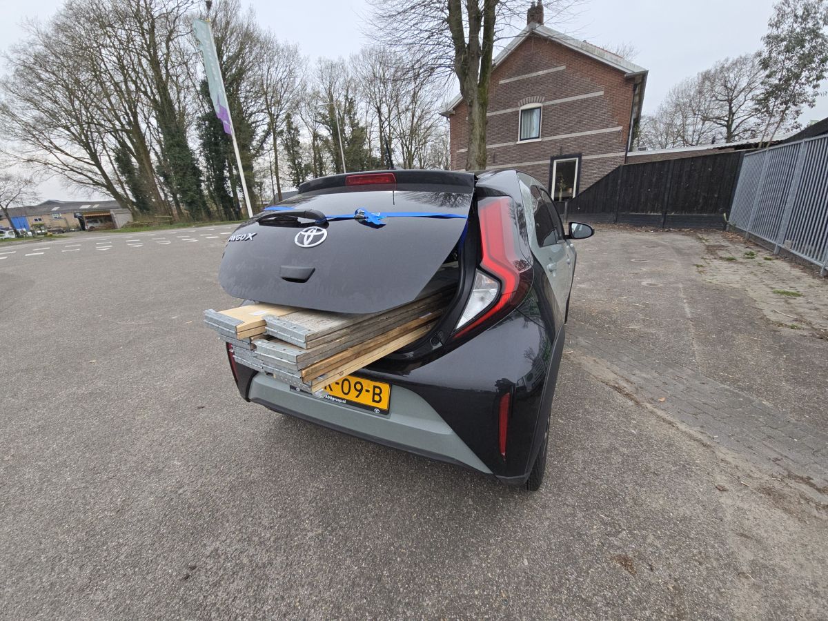 Zojuist de palletranden voor mijn bakken opgehaald. Er past altijd verrassend veel in mijn kleine auto'tje, maar deze planken van 2m paste toch net niet, dus dan maar zo. Afgezien van het kofferbak-piepje die ik niet uit kon zetten, werkte het prima. Was wel redelijk in de buurt gelukkig.