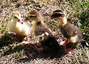 1. Via google kwam ik op dit erg interesante onderwerp terecht. Ik heb dan weliswaar geen moestuin, maar wel een grote tuin met veel slakken. Dat dit goede slakkeneters zijn en ze erg veel gebruikt worden voor het drijven en ik dus met mijn hond doe maakte de keus vrij gemakkelijk in het kiezen van de eend. Sinds enkele maanden lopen hier een 7tal loopeenden. In het begin waren ze erg schuw, maar ze komen steeds meer los en zijn inmiddels totaal niet meer bang voor mij of mijn handelingen wat maakt dat ik nu ook met ze kan gaan werken met de hond. Ik heb dit jaar verscheidene malen geprobeerd eieren via de broedmachine uit te broeden, zo'n 50 nu met als resultaat de laatste ronde welgeteld 1 eendje. Deze schreeuwde moord en brand als ik de kamer uit liep dus heeft gezeldschap gekregen van 2 muskuseendjes en vanaf vrijdag komen daar een paar pekingeendjes voor het vlees bij. Broeden deden de dames hier dus niet vandaar dat ik voor de broedmachine ben gegaan, maar wat ik verkeerd doe? Als ik de fokkers in de omgeving hoor lopen allemaal tegen hetzelfde probleem aan, alles dood in de dop. Er is wel weer een dame aan de leg, maar om nu nog een broedronde te doen vind ik wel erg laat worden. Dat en door de kraaien die de eieren jatten als ze de kans krijgen maakt dat ik ze wel moet rapen momenteel. Volgend jaar hopelijk wat meer geluk. Ik heb me hier aangemeld omdat er erg weinig info over de loopeend te vinden is en om leuke verhalen en ervaring uit te kunnen wisselen Mijn 7 tal: En het 3tal kuikens wat hier nu rond loopt. Rechts het loopeendje Jojo, daarnaast kroepoek en sambal de muskuseendjes