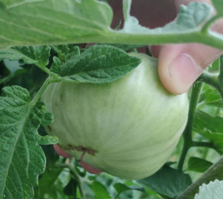 Iemand een idee wat er gaande is met mijn tomaten? =( Ze zijn bijna allemaal zo. Sommigen erger dan anderen. Maar ze hebben het allemaal. Ik dacht eerst aan "blossom end rot", maar het lijkt niet echt op de foto's daarvan die ik online vind. Misschien tomatenwormen? Ik heb volgens mij een keer de volwassen versie (nachtvlinderachtig beest) zien vliegen overdag.