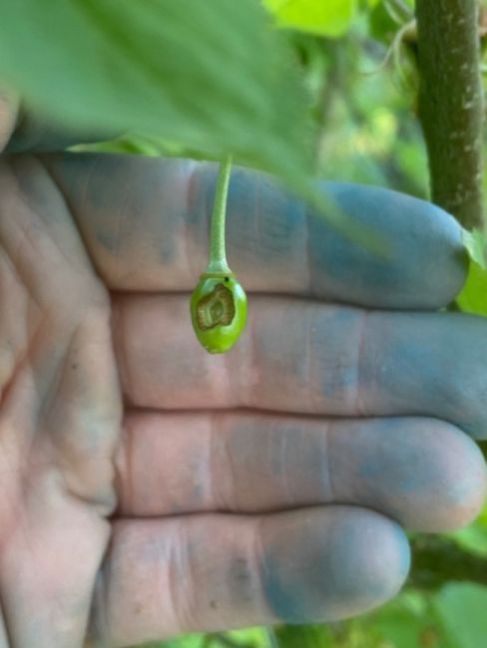 Ze doen het goed hier. 1 kleine fruit cluster van Susquehanna, ik hoop dat het mijn eerste vruchten worden.
