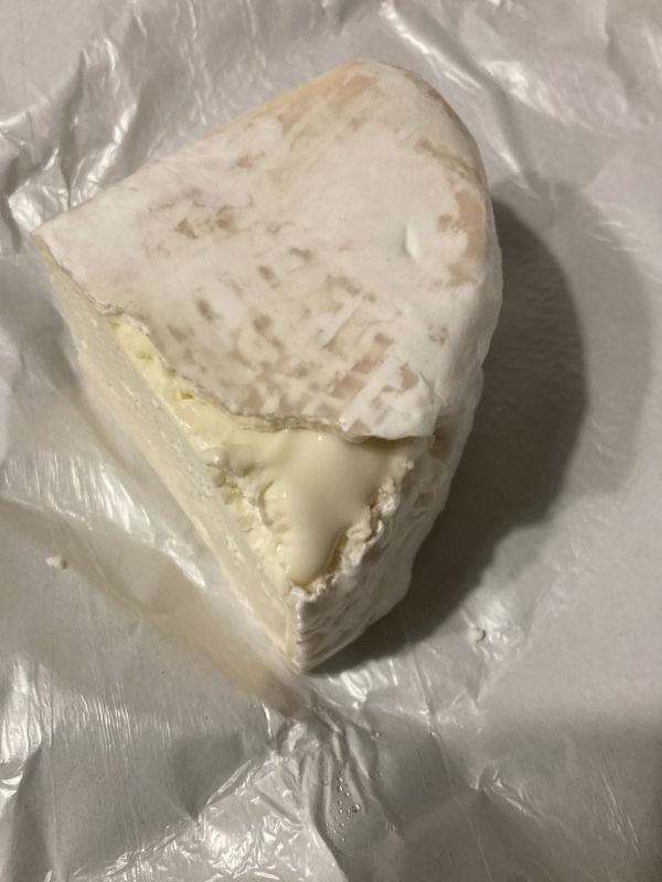 We zijn weer 4 dagen verder. Ik voel nog weinig ‘verzachting’, te ongeduldig waarschijnlijk. Overmorgen is het 2 weken geleden dat de melk de pan in ging. Ik heb zojuist 1 helft door midden gesneden en die ga ik buiten de ijskast verder laten rijpen + vanavond een stukje proeven. Toen zag ik dat het kaasje direct onder de korst toch al wat begint te lopen 🎉. Eens kijken hoe hij smaakt straks. De overige 3/4 ligt weer in kaaspapier in een doosje in de ijskast.