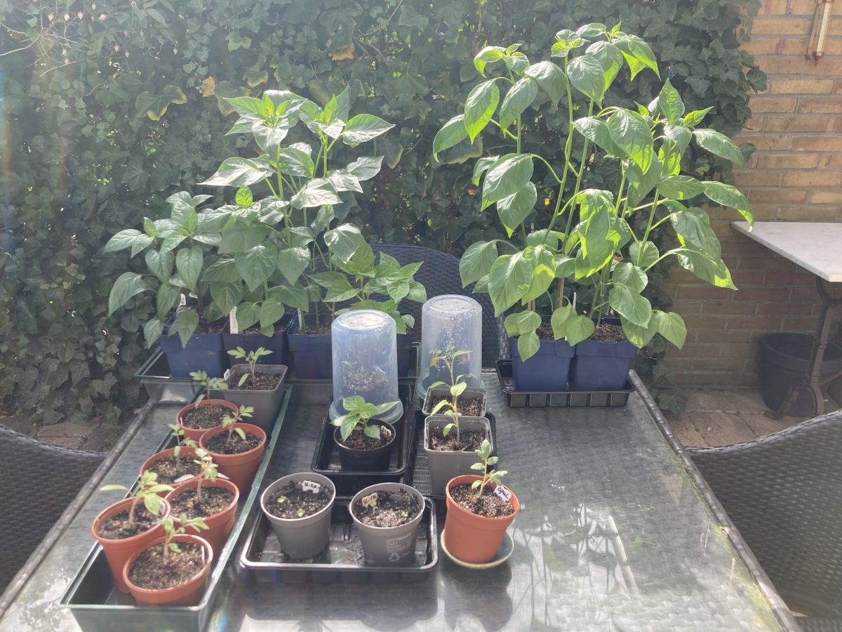 Gesleept met mijn plantjes, ze staan nog steeds buiten. Tot een uur of 19 denk ik. Volgende week wordt het wat frisser dan gaan ze overdag weer in het portable kasje. De rest van de tuin water gegeven.