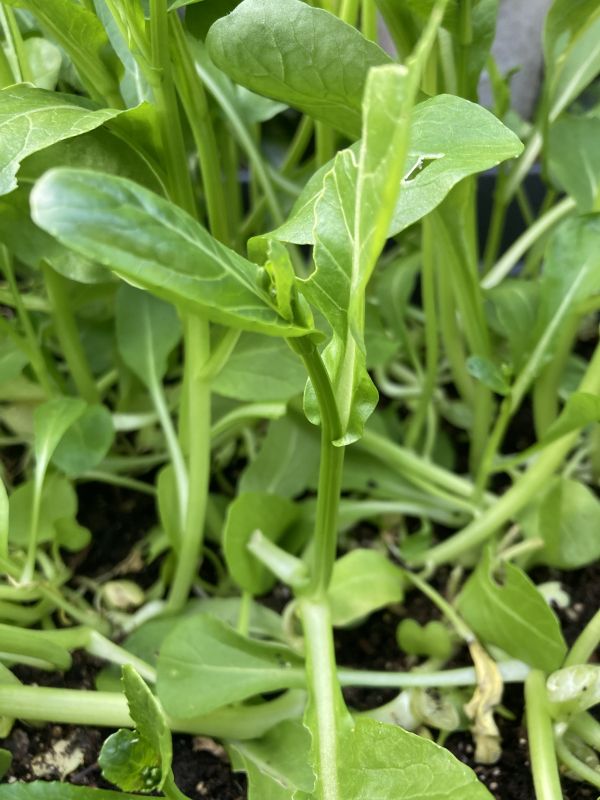 @Petrasmoestuin Ik moet even terugkomen op mijn post van hierboven. Bij de eerste choi-oogst heb ik een aantal planten net boven de kiembladeren geoogst en alhoewel ik dacht dat ze niet meer opnieuw zouden uitlopen, is dat toch gebeurd. Je kunt van 1 plant dus langer oogsten dan ik aanvankelijk dacht. Hieronder zie je zo’n uitlopertje.