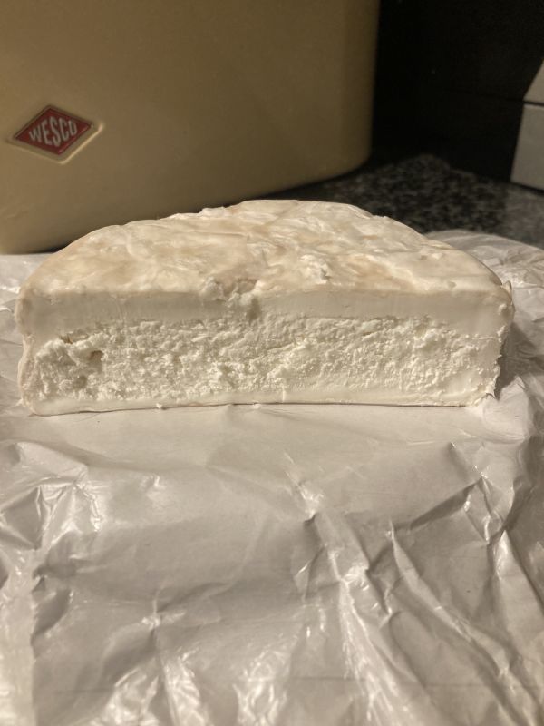 Toch nog even een update van mijn eerste geiten’brie’, vooral omdat hij zo enorm lekker is (vind ik dan 😊). Hij is 3,5 week geleden gemaakt op 11 december. Vanzelfsprekend nog niet helemaal brie-ig, maar wel al half op 😋. Hij smaakt nu als een pittige Bettine blanc met schimmelkorst. Wat ik normaal ook altijd al heel erg lekker vind. Juist met dat schimmelkorstje er omheen. Ik heb een tweede in de maak. Het is volgens mij het meest luie kaasje om zelf te maken (behalve het keren dan). Het recept dat ik volg komt neer op 2 x 24 uur wachten (1x om aan te zuren en te stremmen, 1 x nadat de wrongel is gesneden om uit te lekken in kaasdoek in vergiet). Dan wat zout er door en eventueel in een vorm om te rijpen tot een brie als je schimmelcultuur hebt toegevoegd aan het begin (of niet, dan eet je hem vers zoals je in rollen kunt kopen). Geen temperaturen en geroer etc. Super makkelijk, in dit geval gemaakt van gepasteuriseerde geitenmelk uit de supermarkt.