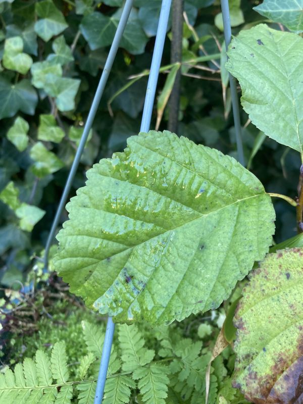 Bij mijn weten staan beiden niet in de buurt @rorror. Wat ik me sowieso afvroeg, mocht het een hazelaar zijn, hoe dat zaadje in vredesnaam in die bak terecht is gekomen. Het leek me wat groot voor het maagdarmkanaal van een vogel 😳. Maar misschien zijn er muizen die e.e.a. omhoog hebben gebracht. Die zitten er genoeg in de tuin (weet ik door onze kat). Ik ben benieuwd wat het vergelijk met jouw hazelaar oplevert @woldistel . Ik zal morgen nog een betere foto proberen te maken van het blad.