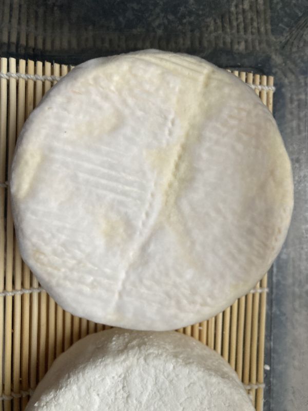 Op 7 december ben ik met mijn tweede cam/brie gestart. Deze keer heb ik hem flink langer laten drogen voordat ik ging zouten. Minder vochtig zou gelijkmatiger rijping betekenen. We gaan zien of dat ook zo is. Het schimmelen duurt in ieder geval langer, dat is al wel duidelijk. Vandaag zijn we 11 dagen verder en het begint er goed uit te zien. Ik denk nog hooguit 2 dagen in de rijpingsbak bij 10 - 12 graden en dan gaat hij in kaaspapier ingepakt de ijskast-bak in. Het geitenbrietje is vandaag precies 1 week oud. De schimmel begint ook hier zichtbaar te worden. Als je goed kijkt zie je het beginnetje in het midden en rechts daarvan. Het kaasje is ook mooi stevig. Ik ben benieuwd hoe deze gaat worden!