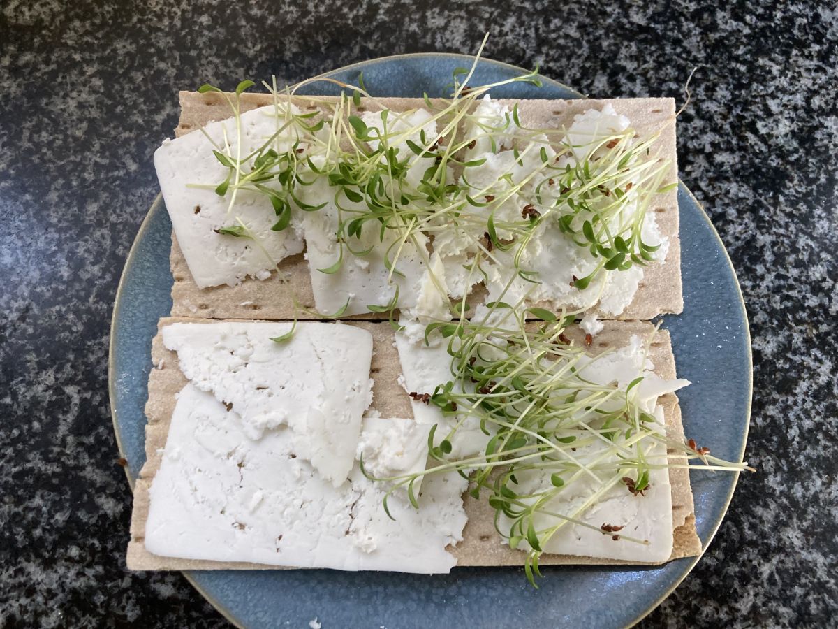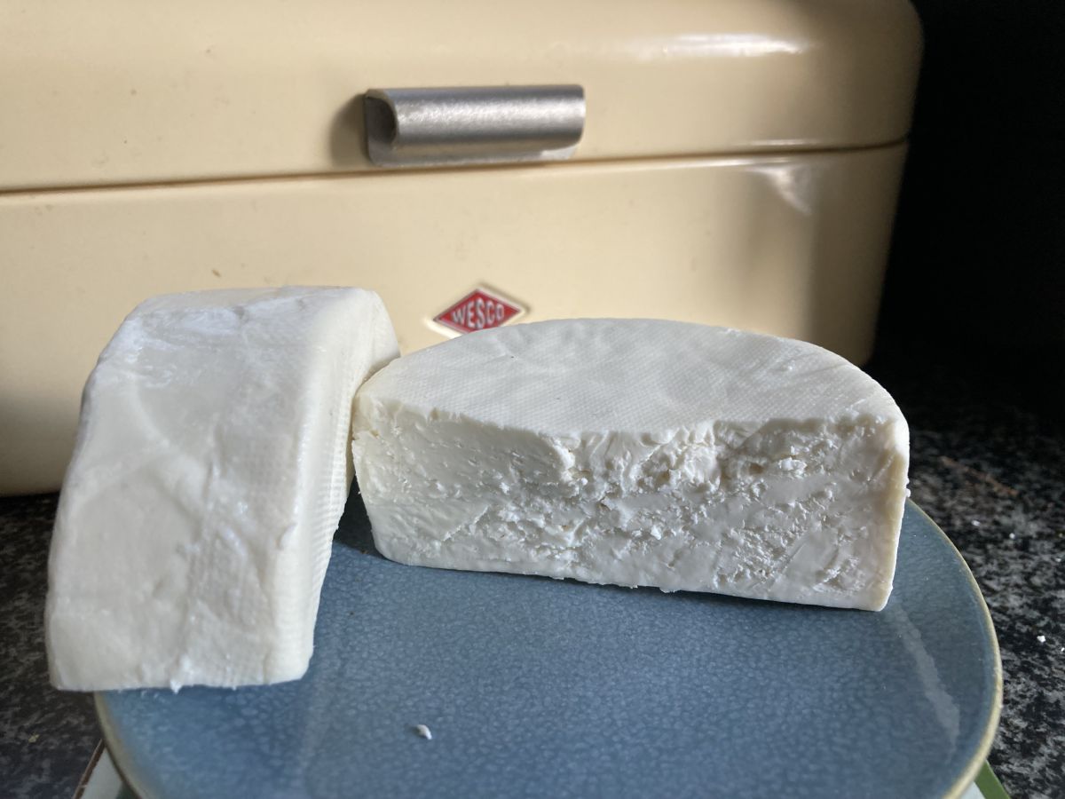 Bijna 3 maanden geleden perste ik op Appelvrouw’s pers mijn eerste Goudse geitje. Omdat hij maar 350 gram woog, heb ik hem na 2 weken drogen gevacumeerd en niet gewaxt. Vandaag was het zover en is hij aangesneden voor de lunch. Hij schaafde niet zo lekker, maar was wel héél erg lekker!!!! En smeuïg, niet te droog en goed op smaak. Met tuinkers uit eigen vensterbank. Ik denk dat ik er binnenkort nog eentje maak. Qua temperatuur kan het nog wel.