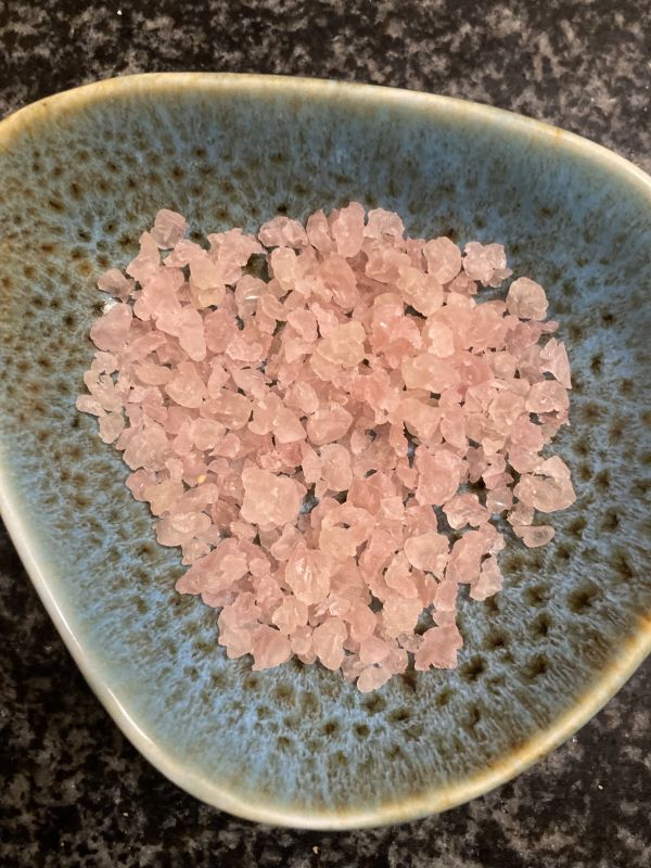 Mooie kleur ook! Ik heb er nu 1 staan met aardbei, ook zo lekker en mooi. Door de snelle vermeerdering van de kristallen heb ik een batch gedroogd in de Stockli, bij 30 graden. Dat ging heel snel en goed. Ligt nu in de vriezer. Je kunt wel zien dat ze bij aardbeien zijn gegroeid, net Himalaya-zout.