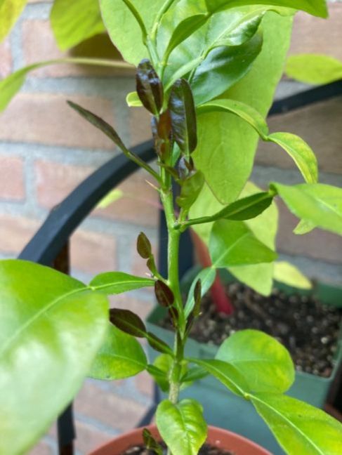 Afgelopen winter heb ik een heel klein kaffirlimoenblad-plantje gekocht (brievenbusplantje, dat zegt genoeg). Sinds een paar weken staat hij buiten en hij begint nu uit te lopen. Vooralsnog gebruik ik diepgevroren limoenblad van de toko, maar hoop dat ik op enig moment van dit plantje kan plukken. Zo heerlijk aromatisch.