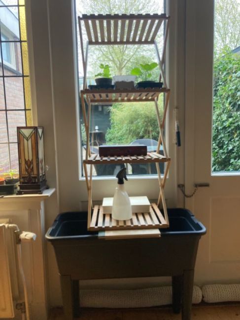 Per ongeluk de vierkante variant van het @woldistel-rekje gekocht een paar weken geleden, maar die is nu wel eindelijk geïnstalleerd 😄. Hij staat nog niet vol (op de vensterbanken staan groeilampen en die hebben de tomatenplantjes nog nodig), maar binnenkort wel. De boeken liggen er op om te voorkomen dat de kat erop springt. Hij moest op hoogte omdat de deur onderin een paneel heeft, dus geen licht. Gelukkig was de 2e kweektafel nog niet in gebruik. Je moet wat 😉. Dank voor de tip Woldistel!