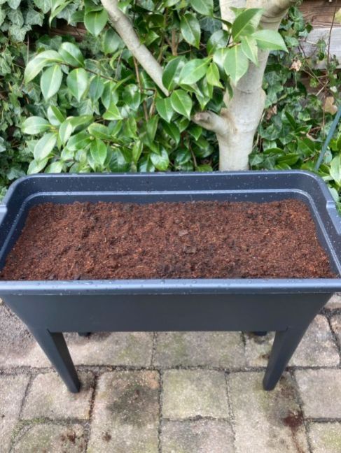 Vanmiddag het kweektafeltje opgezet en gevuld met potgrond- en cocosgrondblokken van Action met wat potgrond uit een zak erdoor gemengd. Superhandig moet ik zeggen. Vervolgens vol gezaaid met Amsterdams reuzenblad (met dank aan @Wortel uit de BZD!). Ben benieuwd, leuk zo’n vroege buitenzaai. Je ziet er verder niets aan, maar toch een fotootje omdat ik er zo blij mee ben. Straks gaat de kap erop.