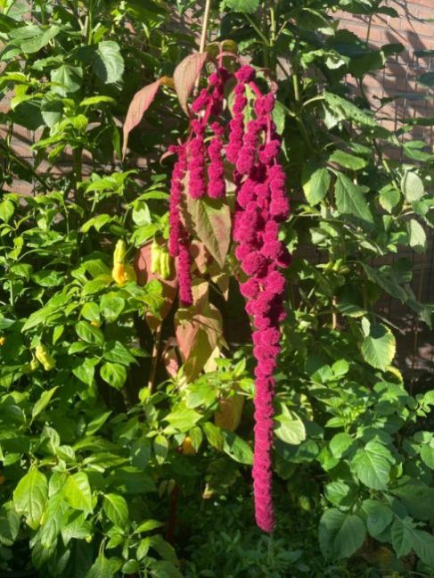 Hé, dat is een goed idee @Nasuada! Ik ga van de week nog wat pepers drogen en dan doe ik er ook een zijaar bij. De hoofdaar groeit hoop ik nog even door tot half oktober. Hier willen we volgend jaar zeker ook de amarant laten terugkomen! Zo mooi en tof! Iedereen die in onze tuin komt loopt er direct op af. Ik vind hem ook zo aaibaar 😃, je moet er even aan komen als je er langs loopt.