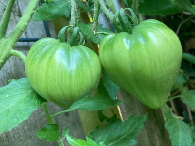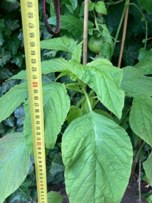 Naar deze (Minusinsk’s orange elephant) ben ik heel benieuwd. Deze zijn zeker voor buitenteelt en het weer van de afgelopen weken best al groot. De vorm vind ik nu al prachtig. Eenmaal rijp zijn ze geel met oranje-rode accenten, ook binnenin. Als het allemaal gaat lukken om ze rijp te krijgen dan wordt dit ongetwijfeld de mooiste soort. En ze zouden ook nog eens heel lekker zijn, we wachten het af.