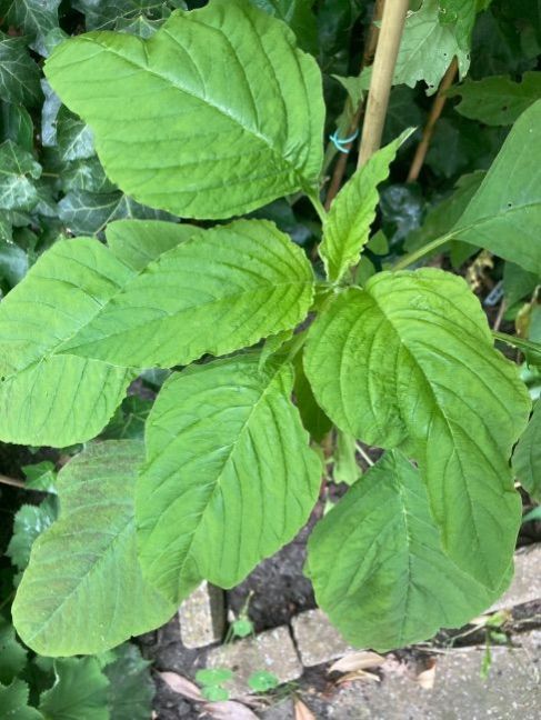 14. De laatste juni-foto’s. De pot-amarant is in 1 week 10 cm gegroeid. De volle grond-amarant 15 cm en is nu dus 65 cm. Nog geen bloemknop te zien. Eigenlijk ben ik daar wel blij mee. Wel allemaal zijuitlopertjes. Dat zal wellicht de lengtegroei van de ‘hoofdaar” niet ten goede komen, maar het maakt de plant wel mooier vind ik.
